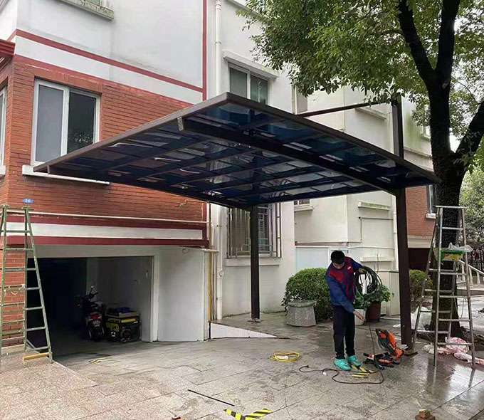 天津昊阳电子配件生产有限公司车棚系列全部采用高品质、高强度铝合金材料精加工而成,具备的氧化保护能力,不生锈,表面特殊的工艺处理,大大提高了车棚的使用寿命。顶棚使用添加了防止紫外线涂层的德国拜耳耐力板,降低了来自紫外线的分解,历久弥新,成就了优越的耐候性。