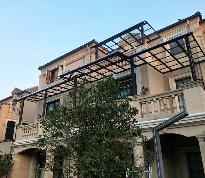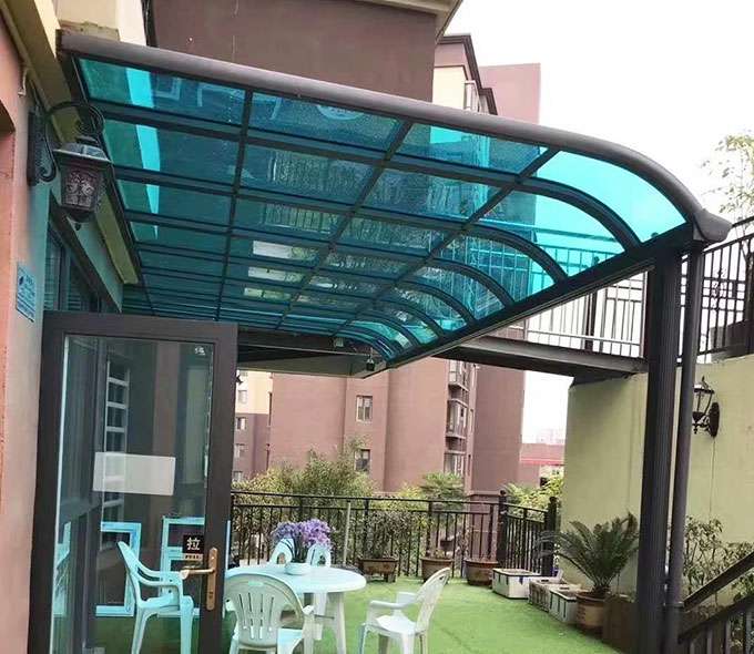 天津昊阳电子配件生产有限公司雨棚(A5款窗棚、露台棚)系列产品是高强度铝合金和聚碳酸酯板(耐力板)的结合。主体结构全部采用高品质、高强度铝合金材料精加工而成,具备的氧化保护能力,不生锈,表面特殊的工艺处理,大大提高了雨棚的使用寿命。顶棚耐力板的运用,能遮挡阳光中的有害紫外线对地板、墙壁、窗帘等损害;同时阻挡夏日毒辣的太阳,可以控制室内温度的上升,冷气效果也大幅度提高,从而达到节约能源的作用。
