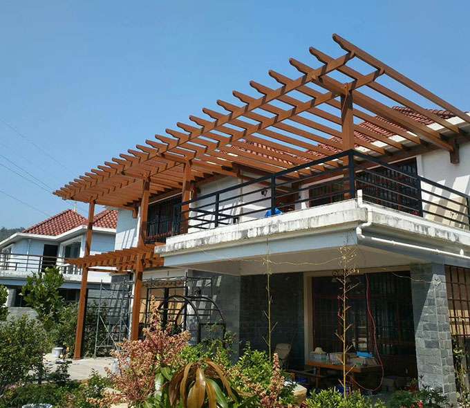 天津昊阳电子配件生产有限公司花架系列产品是采用高强度铝合金为原材料,经酸洗铬化,氧化电泳或静电喷涂,木纹转印处理后,精密定制设计,保障安装。它具有防水防潮,不膨胀不变形,防腐蚀,具有逼真的木质感。成为别墅住宅及市政园林等建筑美丽的风景,还能代替廊子提供遮阴纳凉功能,同时还能用花架作园林大门使用。